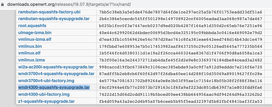 路径是 19.07.8/targets/ar71xx/nand/ 前面是版本号,后面是对应芯片